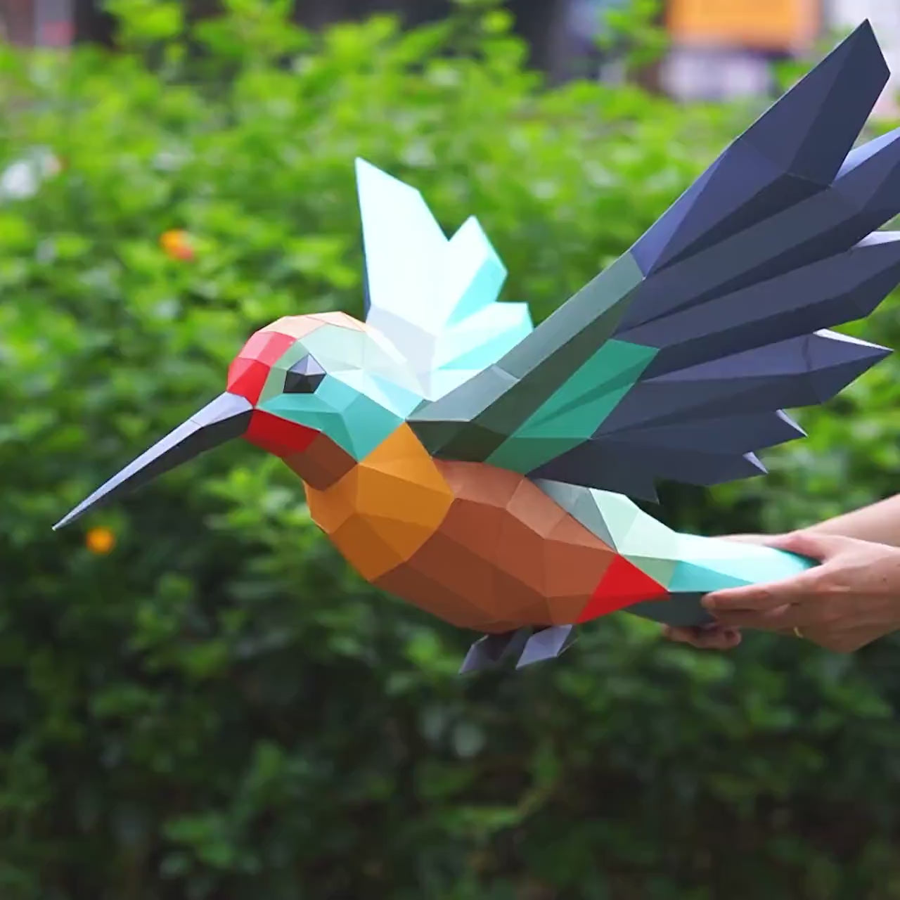 Il s'agit d'une sculpture en papier Colibri low poly, PDF, modèle SVG pour créer des colibris 3D pour décoration de chambre (70 cm-27,56 pouces) Sculpture en papier colibri