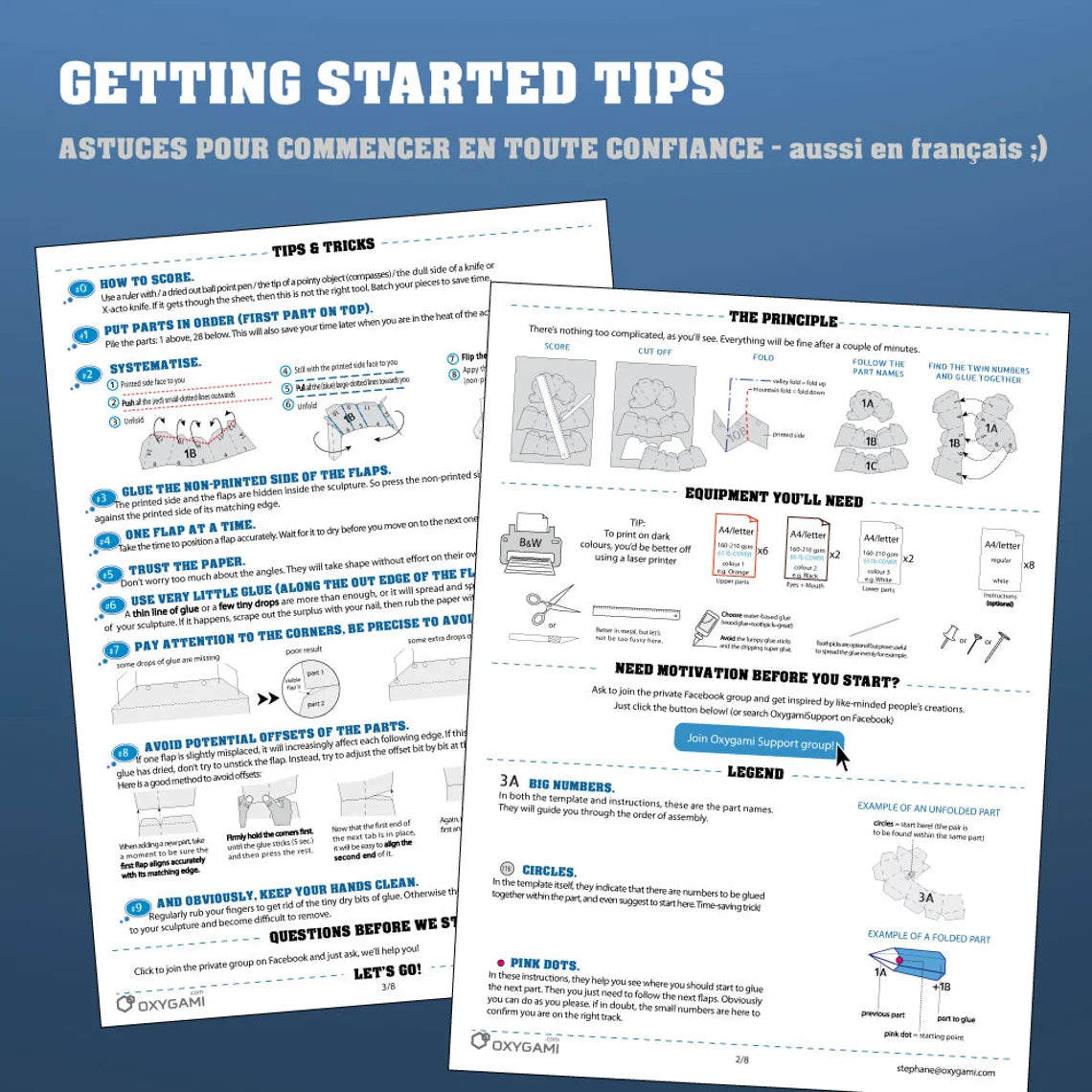 The template, instructions and pictures are protected under the copyright laws worldwide. The finished sculpture is yours but the copyright of the files and derivatives belong to OXYGAMI.