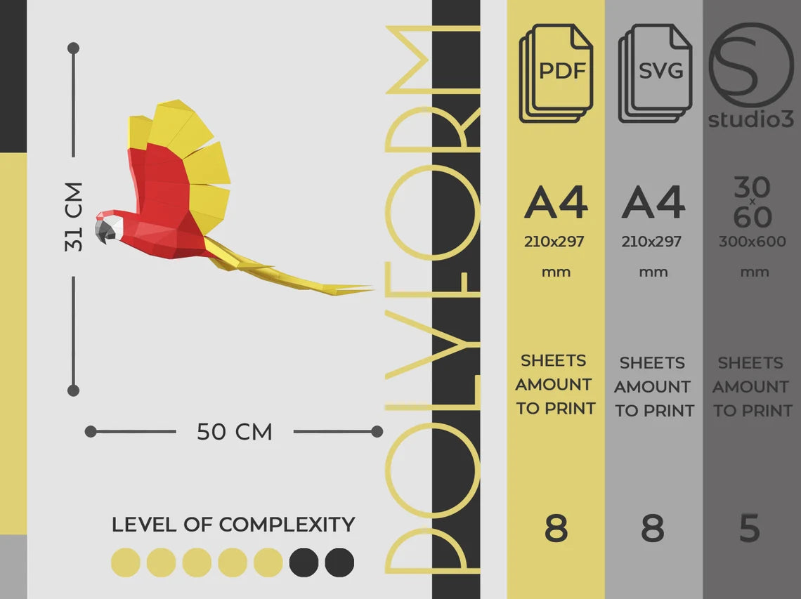 PERROQUET 1 Low Poly Oiseau Papercraft PDF - Fold & Craft -